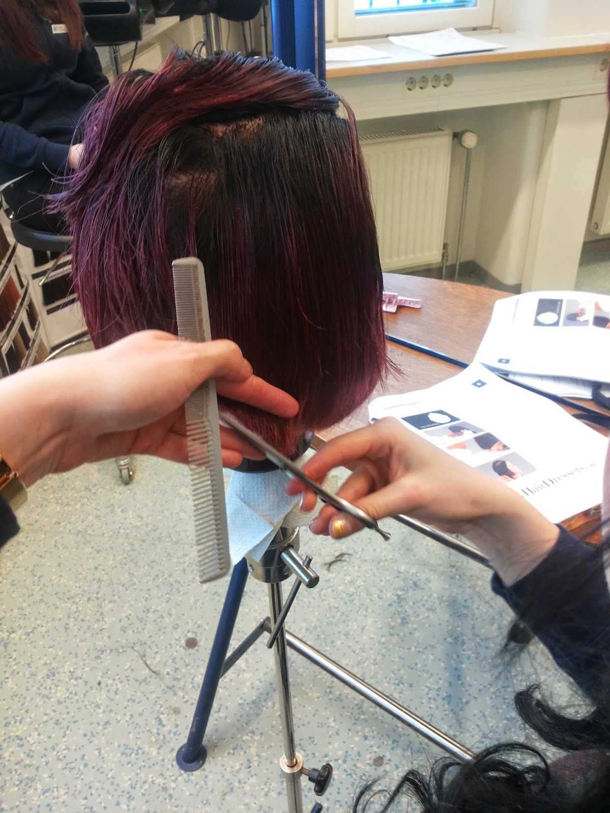 Leikkaus oli kiva toteuttaa, vaikka lähtökohta tilanteessa olikin otsatukka sekä paljon kerrostusta, jotka vaikuttivat lopputulokseen (leikkauksesta ei siis voinutkaan saada täysin mallinmukaista). Leikkaus onnistuin omasta mielestäni kuitenkin hyvin, vaikka leikkasin porrastuksen korkeammalle, kuin mallissa. Ärsytti myös lopussa, kun pään värjäyksestä jäi punaisia täpliä porrastukseen, mikä sai leikkauksen näyttämään epäsiistiltä... Leikkausta oli helppo seurata monisteesta, sekä ohjeet olivat selkeät. Ei siis tullut isompia ongelmia leikatessa. Olen siis tyytyväinen lopputulokseen.